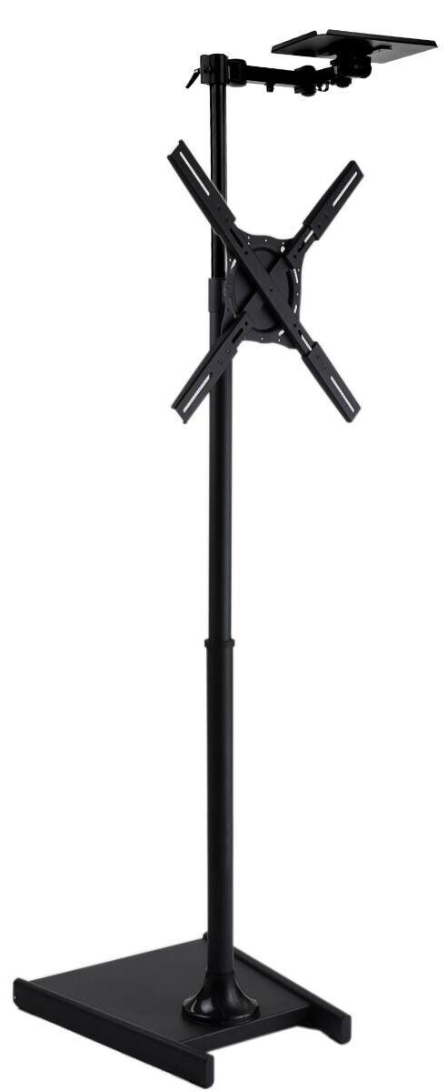 Our floor TV window display stand features a stylish black finish ideal for any retail or business setting. This flush television mount is designed so that the flat screen can rest seamlessly against a glass surface to give passersby the best view possible and entice them to enter. Each floor TV window display stand includes a rear-facing base, a great design for retailers who want to avoid screwing the mount into the wall, floor, or ceiling. The base serves as a perfect spot to supplement your display with poster stands, retail shelving, and merchandising kits – mixing digital advertisement with key product placement. This floor TV window display has two wheels, making it easy to move from place to place, and a weighted base for added stability. Our television mount features eight adjustable height settings to comfortably adapt to the desired eye level. Each unit includes a mounting hardware kit with everything needed to get your display up and running on the day of delivery.